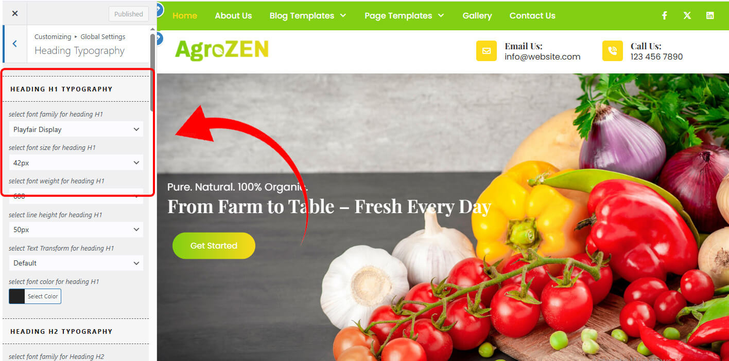We have manage Typography settings sections wise, for easy to setup your settings from on global settings