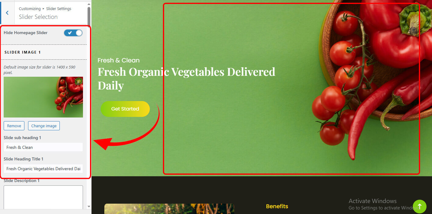 Manage all settings from slider settings Tab exa. slider trpography, color link etc