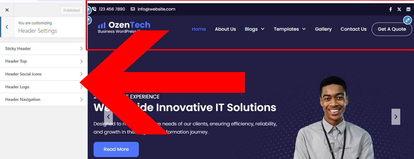 - From your WordPress Dashboard, navigate to the Appearance > Customize > Header Settings > Top Bar