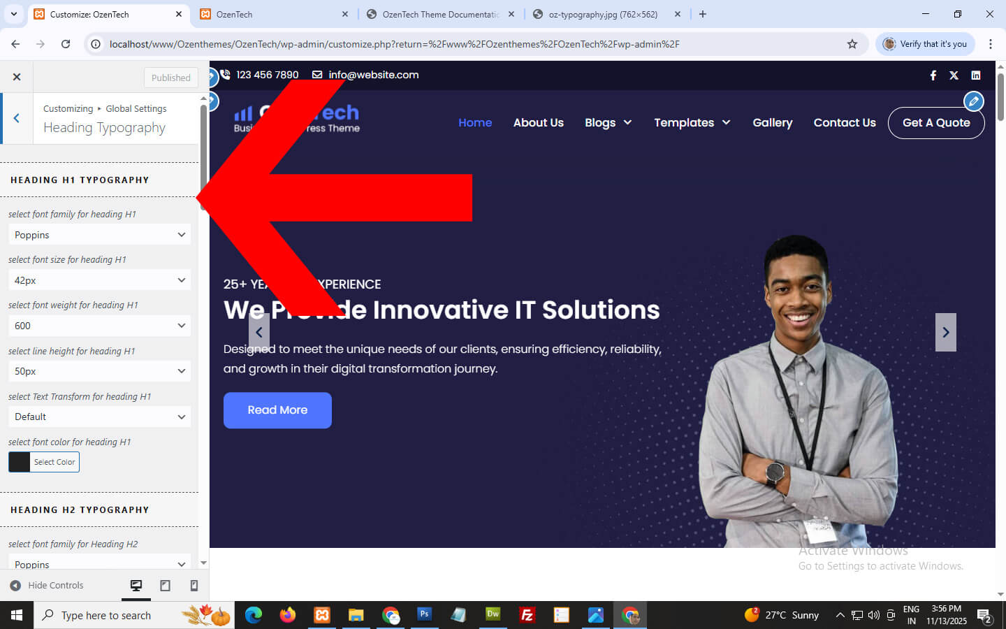 We have manage Typography settings section wise, for easy to setup your settings fromon place