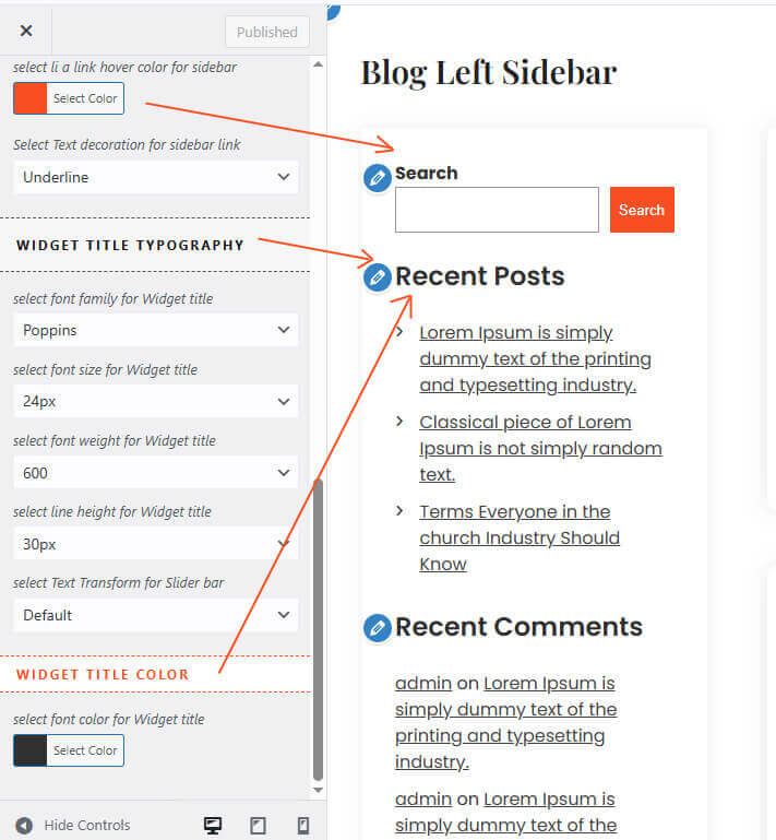 - Can manage sidebar from widgets (exa. blog sidebar and Page sidebar)