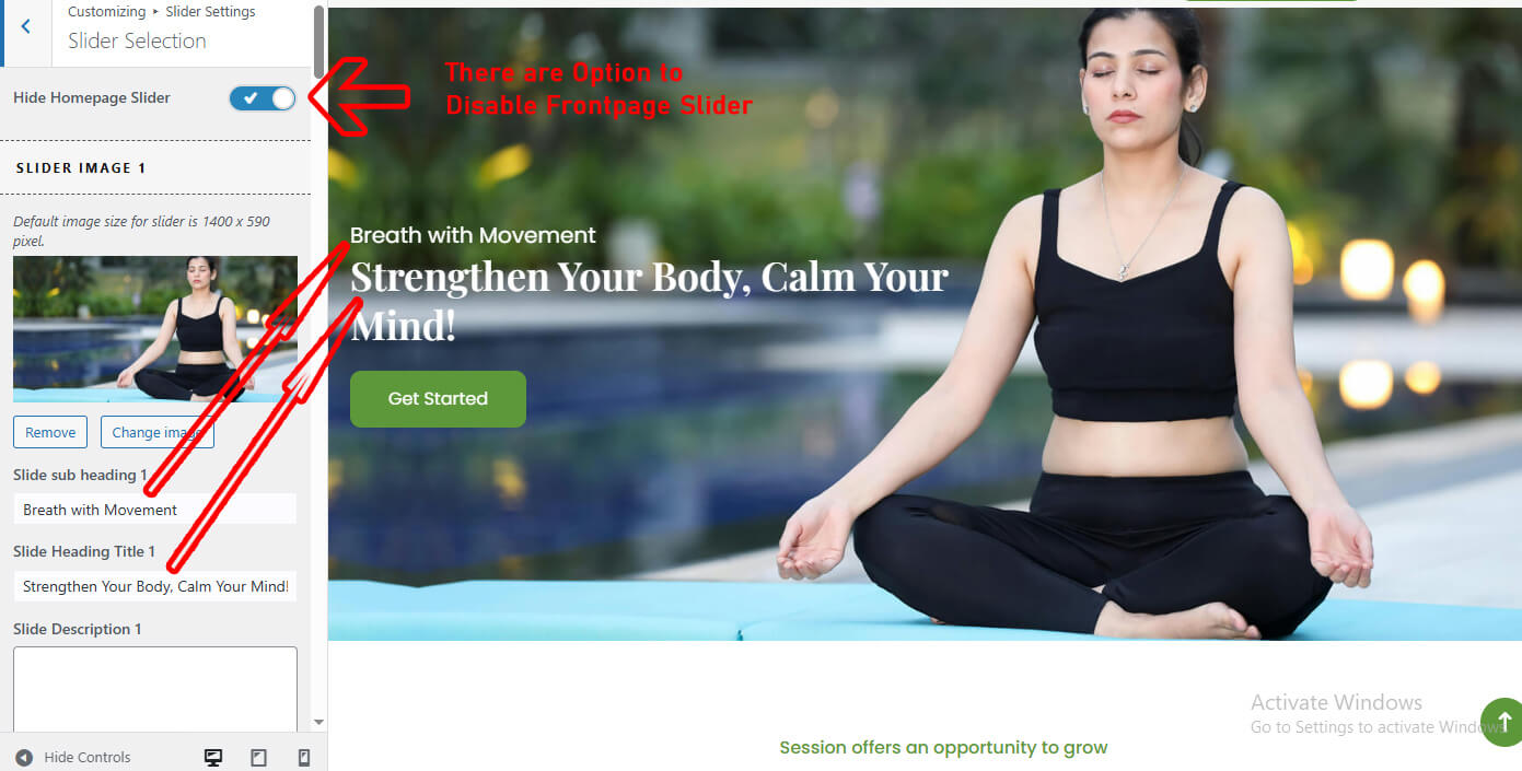 The Homepage sections are based on Elementor page builder plugin. After installing the YogaZen PRO theme, please install the Elementor Website Builder plugin.